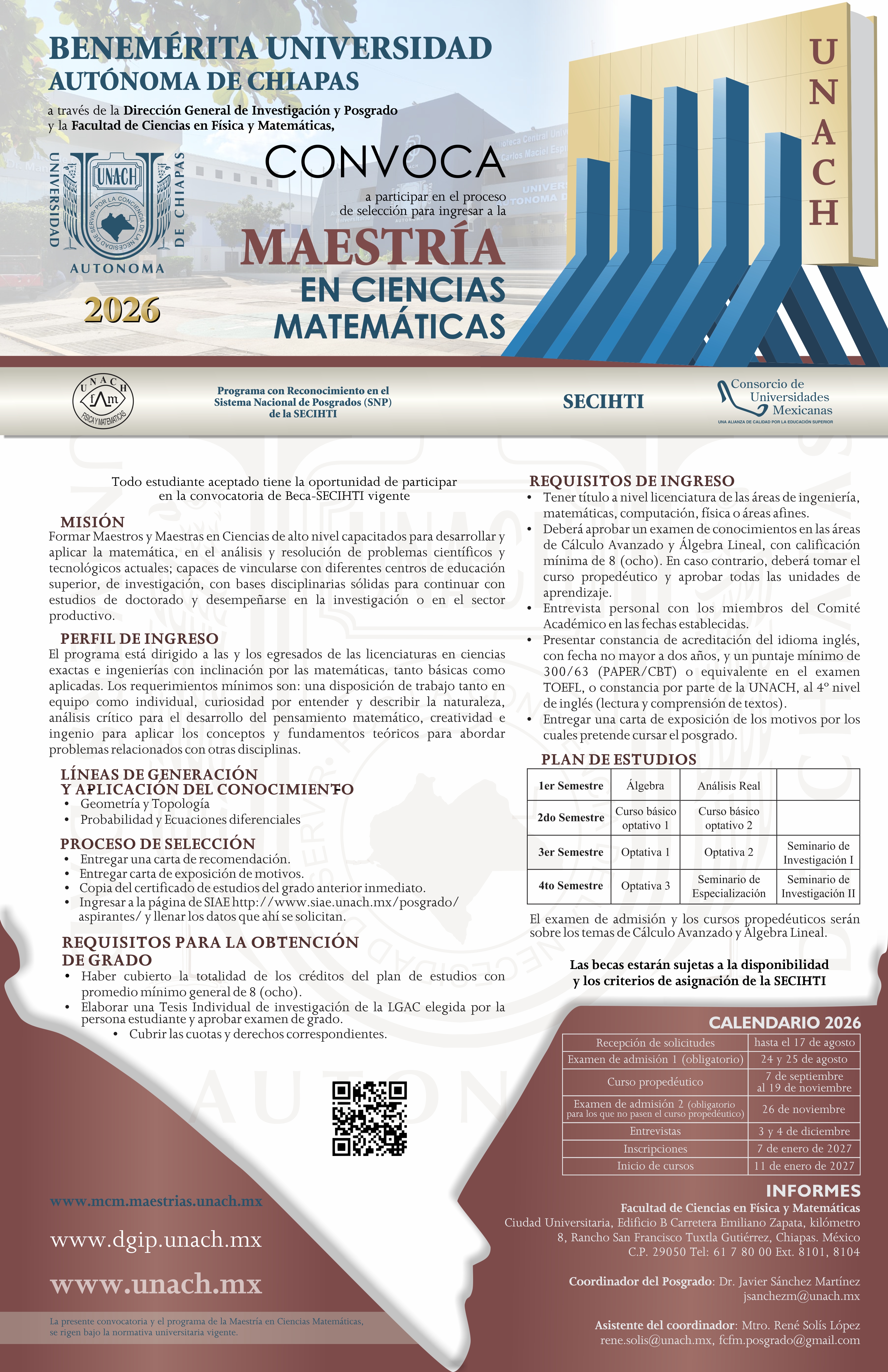 CONVOCATORIA MAESTRÍA EN CIENCIAS MATEMÁTICAS. RECEPCIÓN DE SOLICITUDES HASTA EL 17 DE AGOSTO DE 2026